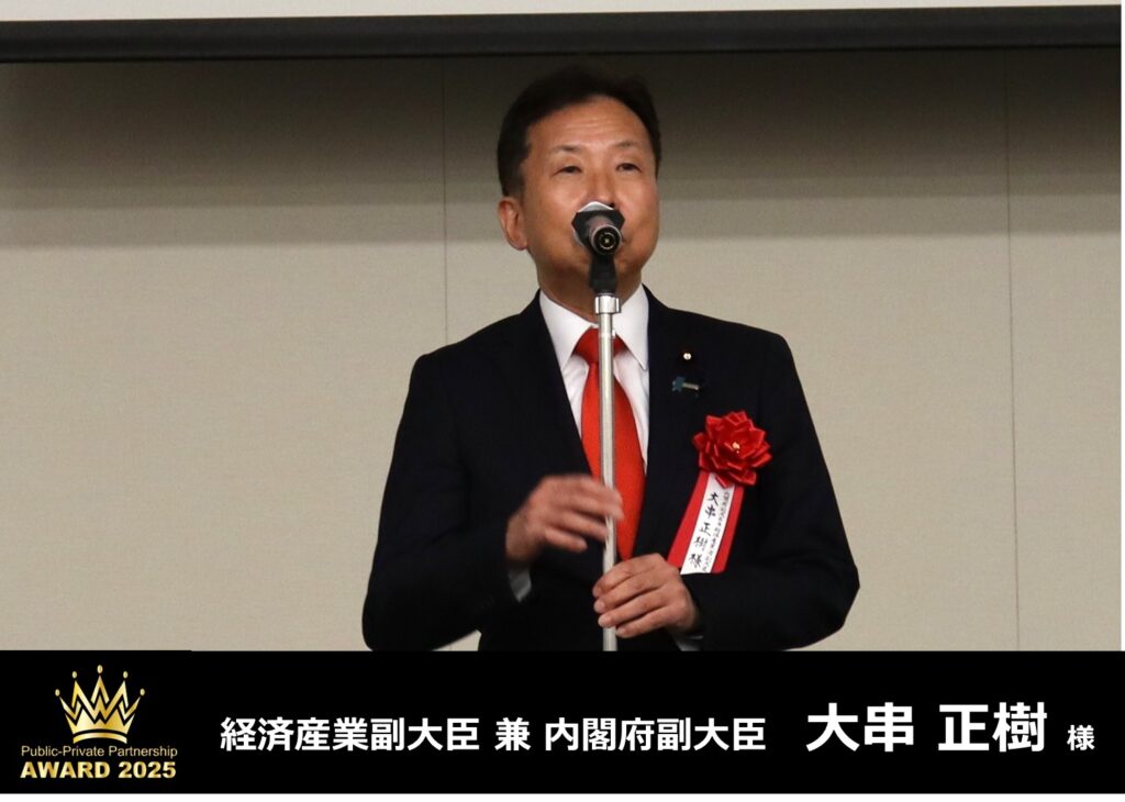 一般社団法人公民連携推進機構では、令和7年10月22日に、大串正樹経済産業副大臣・内閣府副大臣、内閣府 新しい地方経済・生活環境創生本部 大瀧洋参事官、経済産業省 イノベーション創出新事業推進課 鈴木裕也課長にご参加いただき、衆議院第一議員会館大会議室にて、第3回公民連携推進セミナー「地方創生AWARD」を開始いたしました。