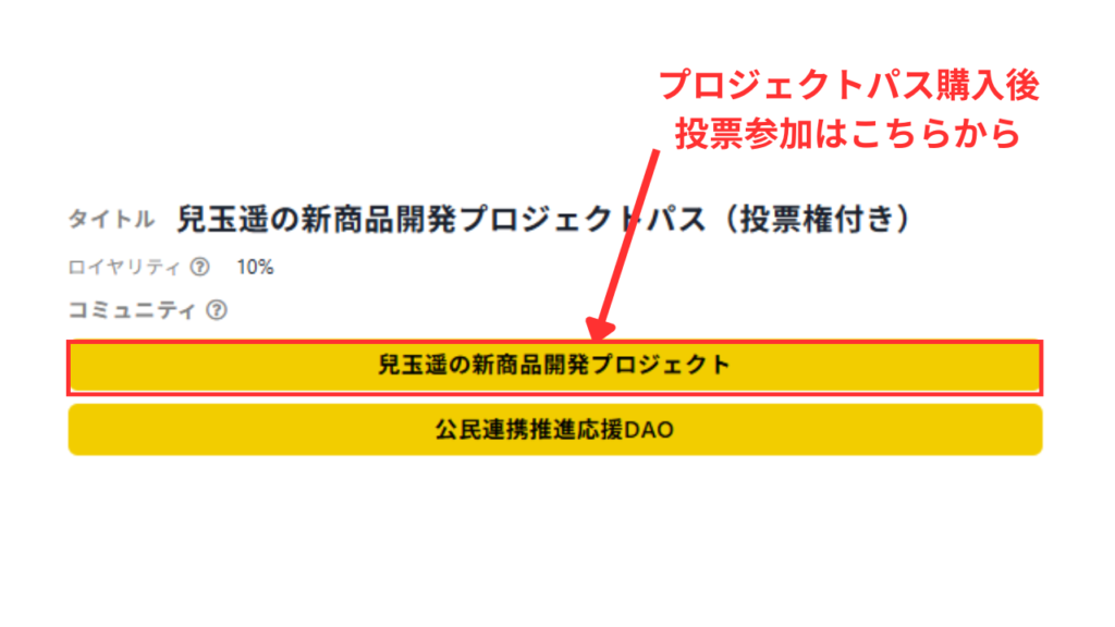 新商品開発プロジェクトパスの所有枚数が投票数になります。