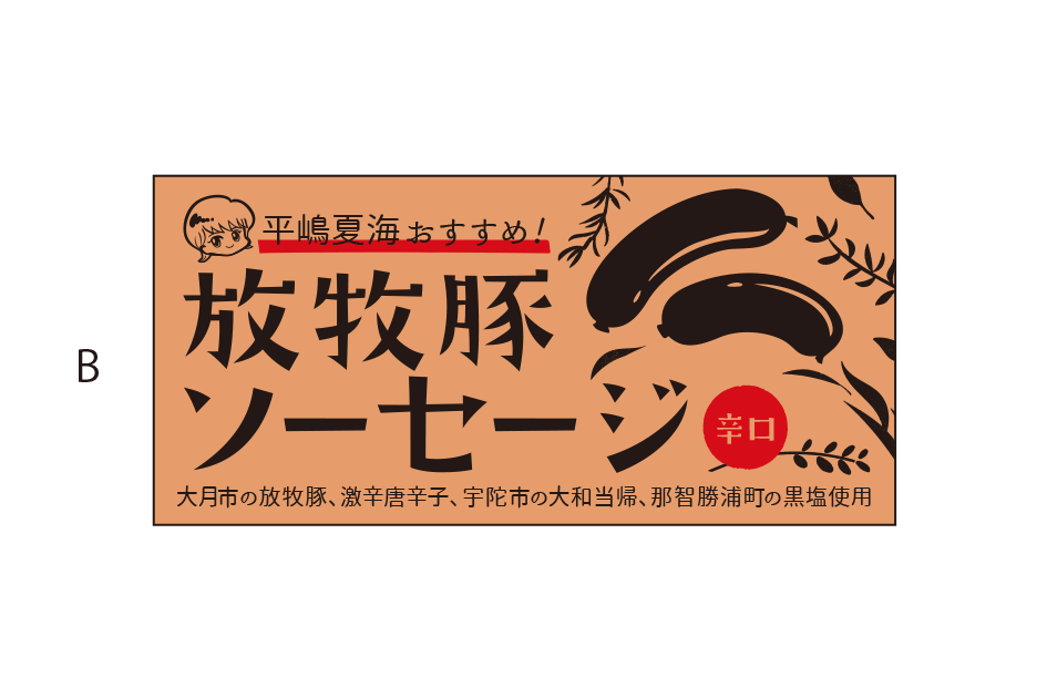 平嶋夏海×大月市・那智勝浦町・宇陀市コラボ「放牧豚辛口ソーセージ」コラボデザイン投票!